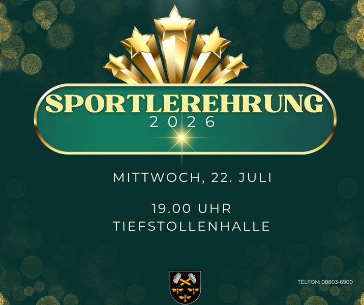 Für die am Mittwoch, den 22. Juli 2026 stattfindende Sportlerehrung bitten wir Sie, uns auf dem ►Meldebogen in Frage kommenden Sportlerinnen und Sportler zu melden.